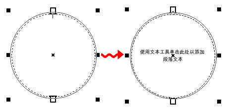 形状时,单击鼠标左键,此时图形内将出现段落文本虚线框,这就相当于文本框。