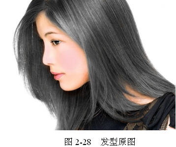效果描述 将一张乌黑亮泽的头发数码照片,如图 2-28 所示。经过 Photoshop CS 中的染发术制作成为一张时尚的金发女郎,最终的数码染发效果,如图 2-29 所示。