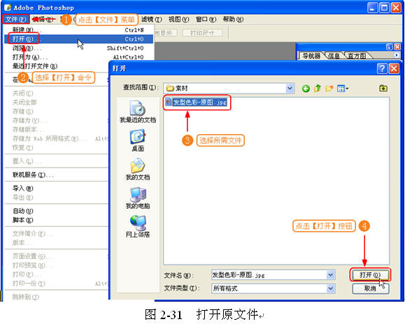 (1) 打开文件。使用 Photoshop CS 的菜单【文件】|【打开】命令打开【实例 9 】︱【素材】︱【发型色彩 - 原图 .jpg 】,如图 2-31 所示。