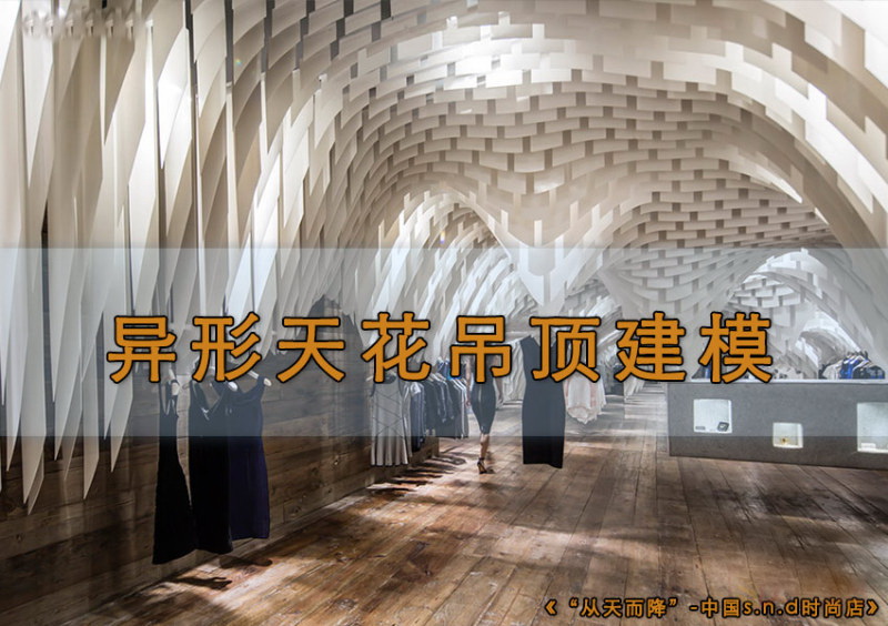 在《“从天而降”-中国s.n.d时尚店》中,吊顶所用的设计材料为极薄半透明玻璃纤维,该材料不仅有极高的阻燃性,同时还能反射灯光从而达到精彩壮观的照明效果,而最终创造出空灵柔美的天花吊顶景观设计,为所有“时尚的羔羊”提供了无与伦比的购物氛围。"大家动手创建一个你喜欢的个性造型吧。本教程中我们我参照的店面《“从天而降”-中国s.n.d时尚店》高精图集及贴图都在群相册中。