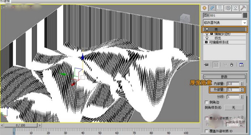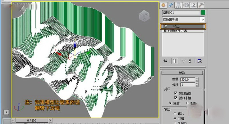 第四步,线条挤出。(注:如果挤出后看到挤出后的模型黑的,可能是法线问题,翻转下发现就好了)