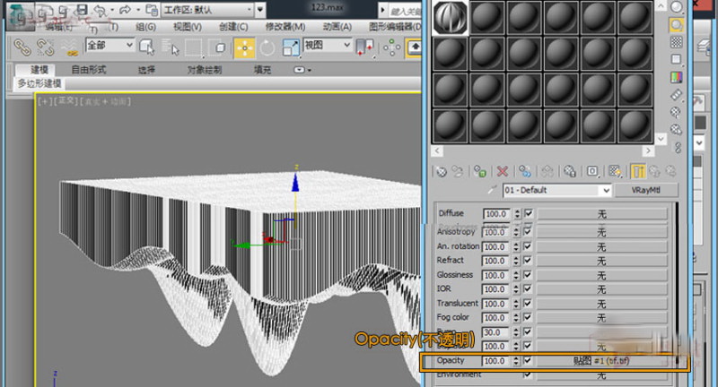 第二步,在max进行设置材质,因为我制作的贴图背景是白色,所以我给模型一个白色的材质。然后将我们制作好的贴图给“Opacity(不透明)”里面。