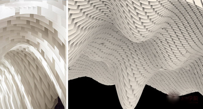 教程我们就来学习一下这个“从天而降”造型的建模方法,首先我们来分析一下这个吊顶的结构特征,看下图: