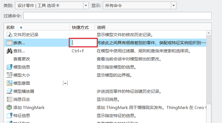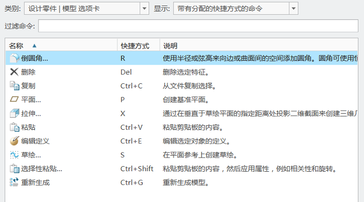 相比Proe,Creo4.0自带的快捷键增加了不少,下图展示了部分Creo4.0自带的快捷键。