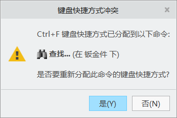 如果新定义使用了已分配给其他键盘快捷方式或映射键的键组合,则会自动检测出冲突,同时冲突解决方案对话框会打开。