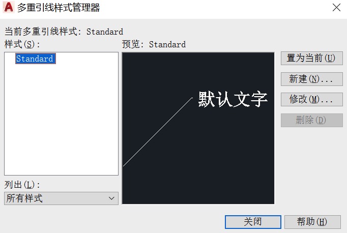 1,在命令行输入MLEADERSTYLE,按回车键,打开标注样式管理器,如图