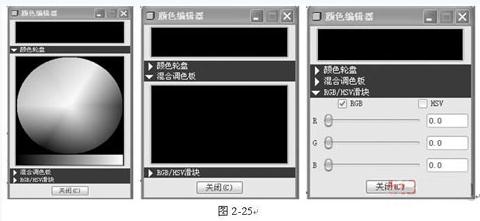 在该对话框中,每个选项前面都有一个 按钮,用户若要改变某选项的颜色,只需要单击该按钮,系统会弹出【颜色编辑器】对话框,如图2 25所示。