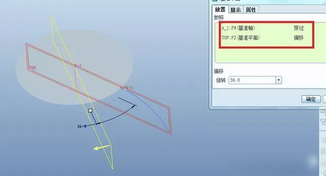 2.创建基准平面DTM1.点击基准平面工具,选择FRONT平面,偏移距离为5.