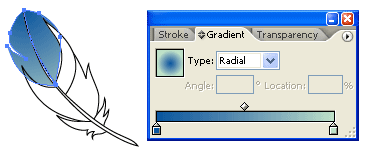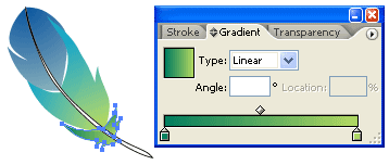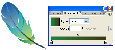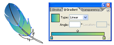 步骤 2、应用渐变填充 选择头2个路径,用如下所示渐变效果填充。利用相同的方法完成其他羽毛的填充。
