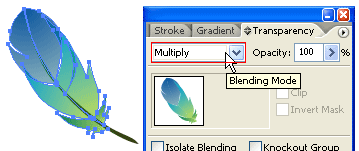 步骤 3、应用正片叠底模式 选择所有的路径,在透明度面板中选择“正片叠底”。