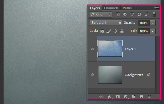 放置在背景层上方的“texture 4 blue snow”的质感,并更改其图层的混合模式为柔光。