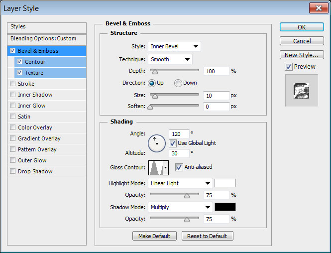 接下来,我们将运用图层样式到我们每一个文字层。因此,对于每一个文字图层,双击它,然后使用如下所示的值: