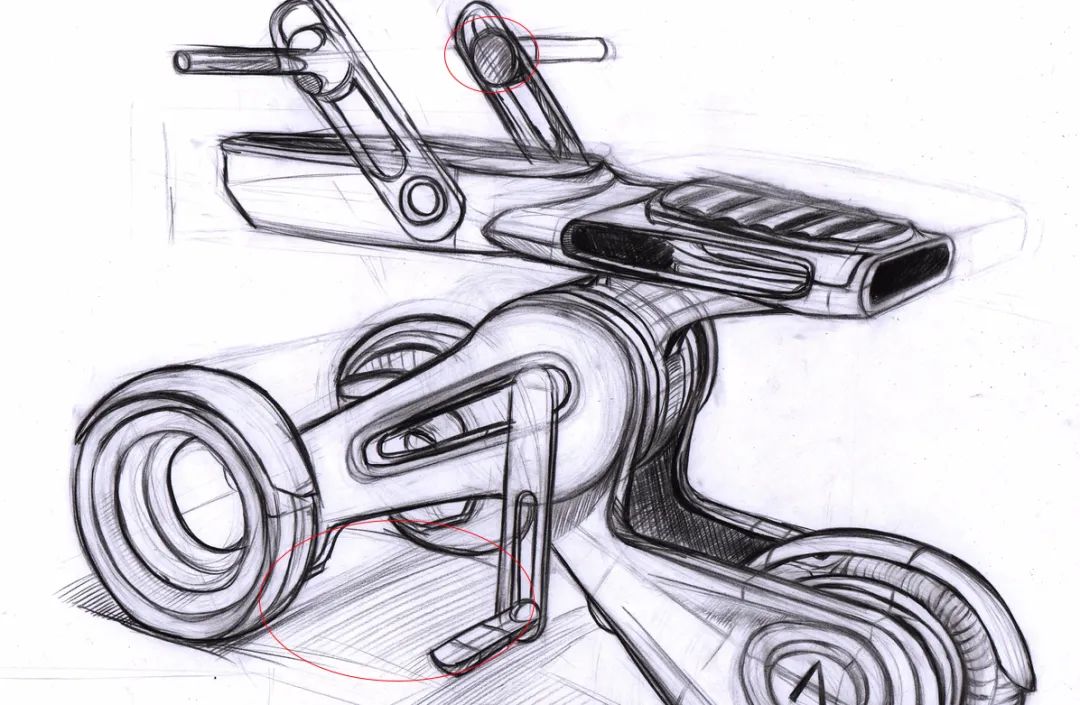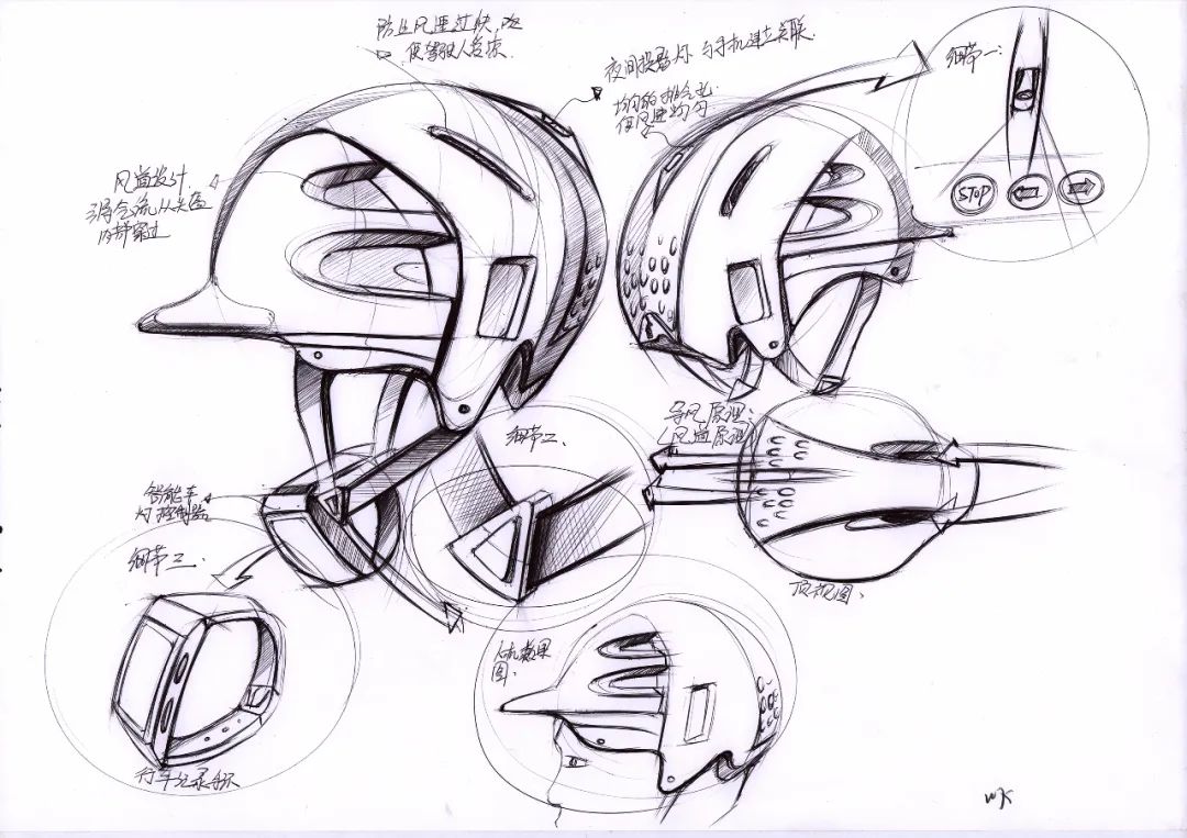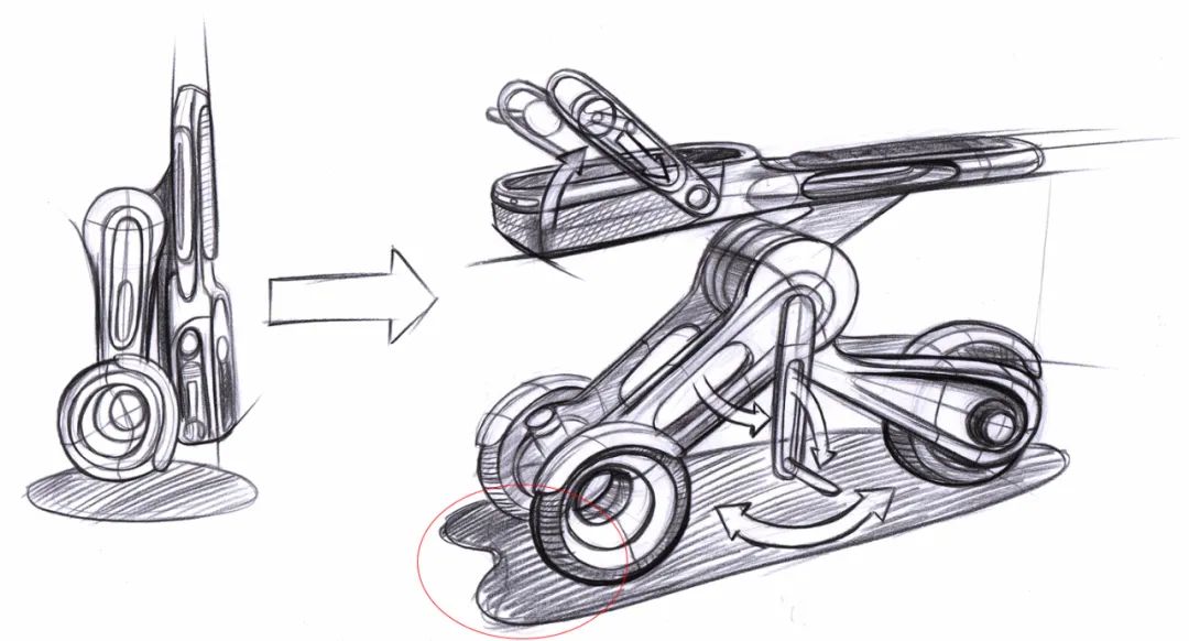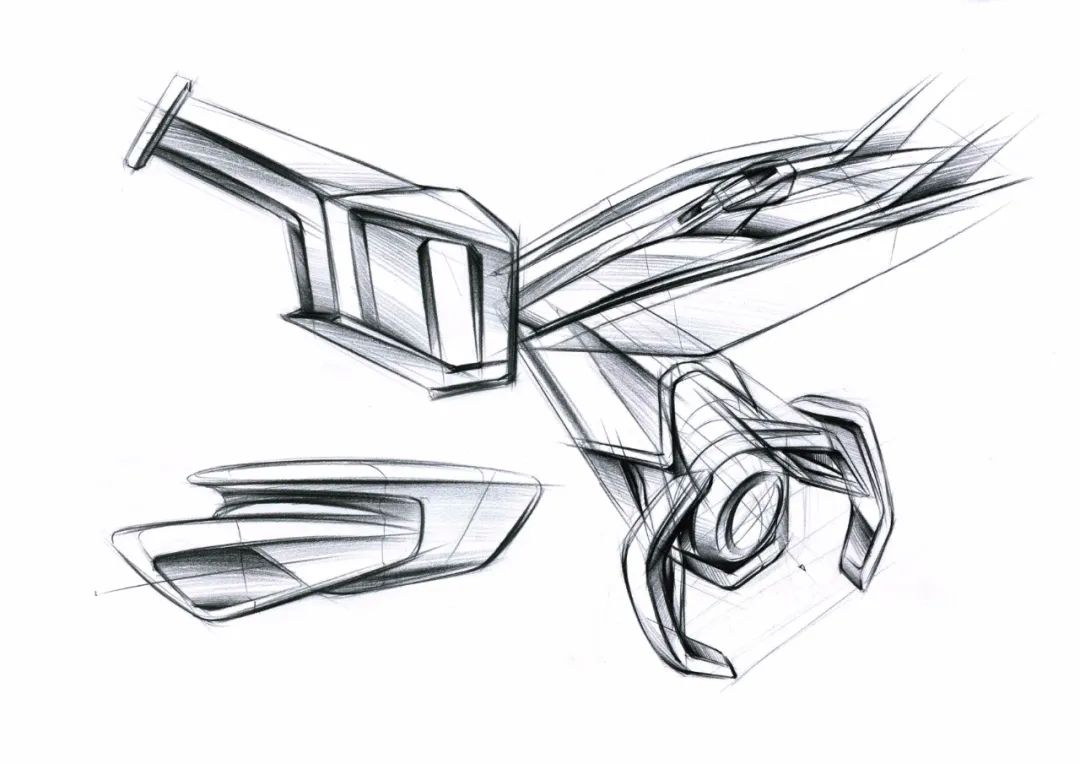 在工业产品设计手绘中,掌握排线的曲直和轻重极为重要。好的排线应该是两头虚中间实的线条,方向有秩,疏密均匀,适当变换排线方向,一层一层的加深,切忌乱涂。