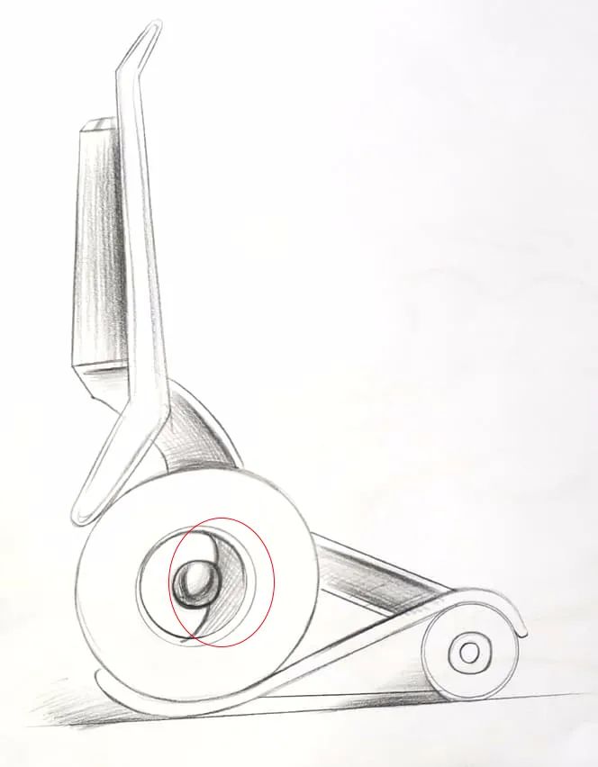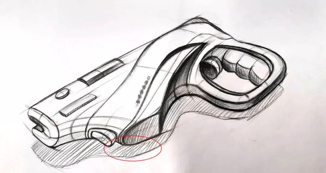下面我们来看一下如何去运用均匀过渡排线在工业产品手绘作品中表现产品形体上的空间。