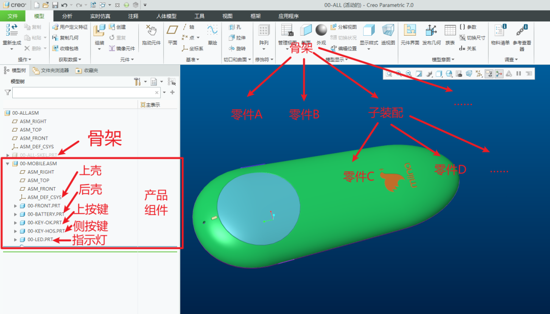由此可见,由顶至下产品设计思想及Creo/Proe由顶至下建模思路和方法是所有工业设计师/产品设计师必须掌握的一种设计思想和技能。
