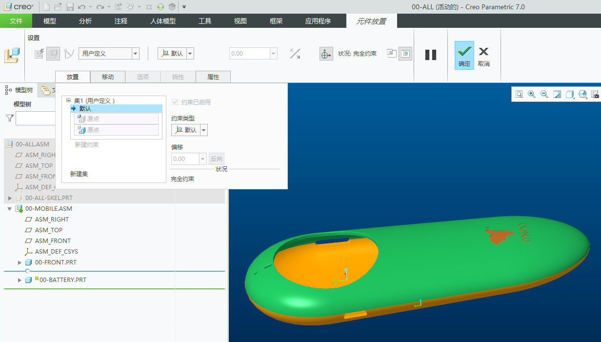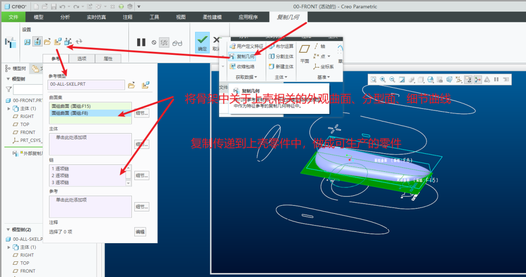 1、首先根据总体设计要求,进行顶层定义。根据创意设计要求,创建骨架模型00-all-skel.prt。