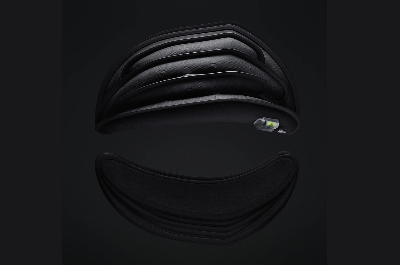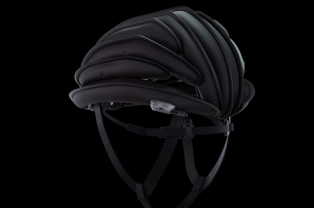 Ventete aH-1 是一款便携安全头盔设计,专为骑行人士而设计,头盔在人们印象中都是不方便携带的,然而这款头盔不会,它的便携之处在于可放气折叠收纳,没错,这是一款可充气头盔设计,未使用时可扁平收纳,方便携带,通过几次气泵即可充气成型,提供实际的保护功能。