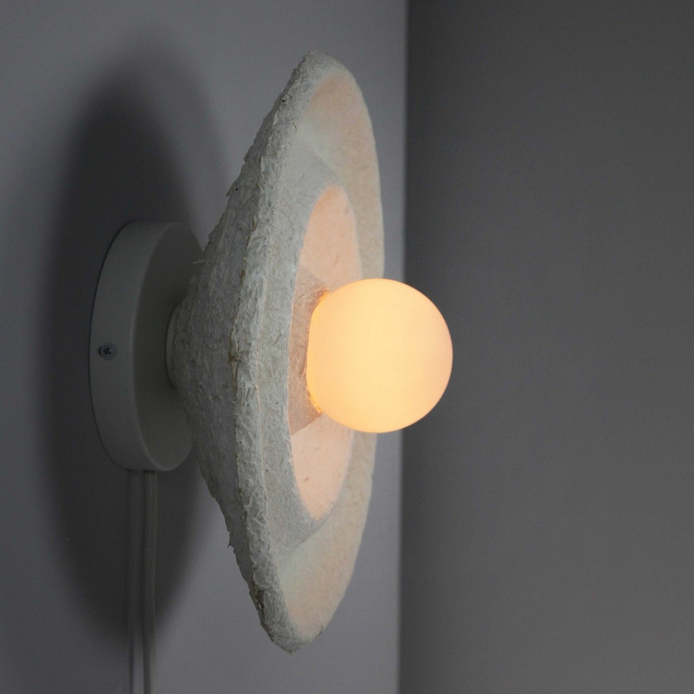 Mycelium 是一款可持续灯罩产品设计,设计师旨在用绿色材料设计代替传统材料(如织物甚至混凝土),代替传统灯具中的灯罩,难以想象,灯罩的材料为可持续、可生物降解、可再生的材料制成,答案就是菌丝,而且它可以在实验室中轻松种植,而非在工厂中制造。