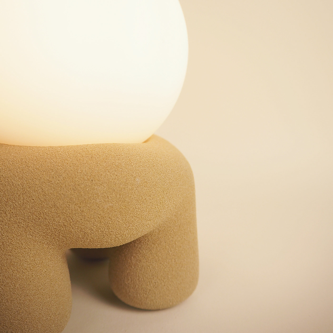 The Sun Lamp 是一款创意灯具产品设计,在3D打印技术的加持下,材料设计为沙子,不管是材料还是外形都非常的独特,而且具有环保意义,它的外形呆萌小巧有趣,由底座和灯构成,独特而具有废土风格。