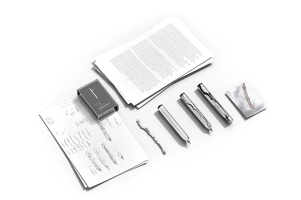 IceN 是一款钢笔文具产品设计,其设计灵感来源于大自然中的树枝,设计师巧妙的取自其形态于笔中,笔内部的每个“分支”都是唯一的,其墨水管就是树枝的形态,以其代表了环境意识与人类对可重用性的追求之间的结合。