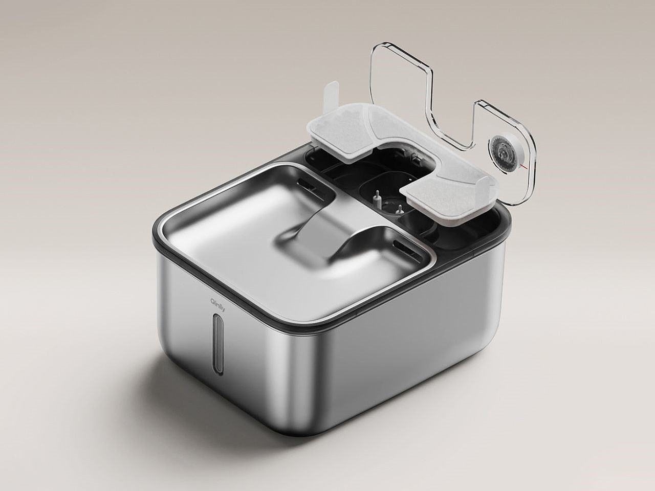 Qinliy 是一款专为猫咪宠物而设计的更加安全健康的饮水工具用品设计,作为宠物饮水机,它带有过滤筒设计,而且设计师特意采用了透明的盖子可见,用户可以直接检查过滤器的状况,并根据需要更换它,确保水保持纯净。