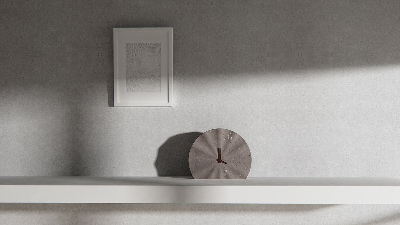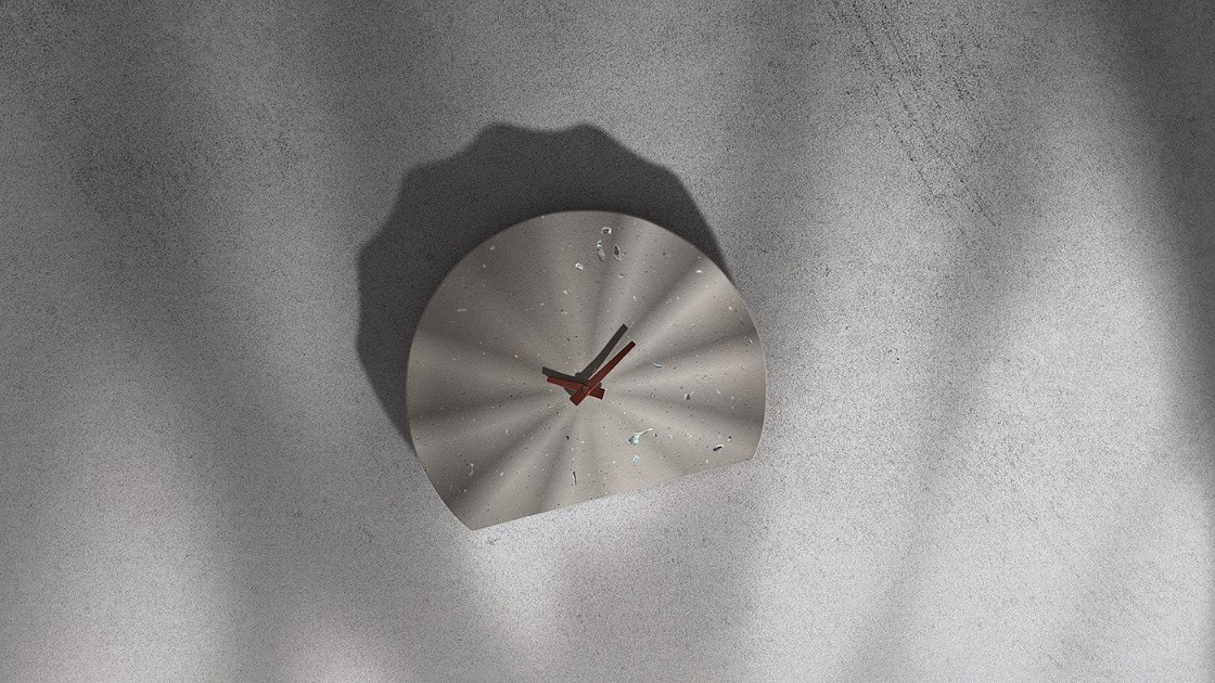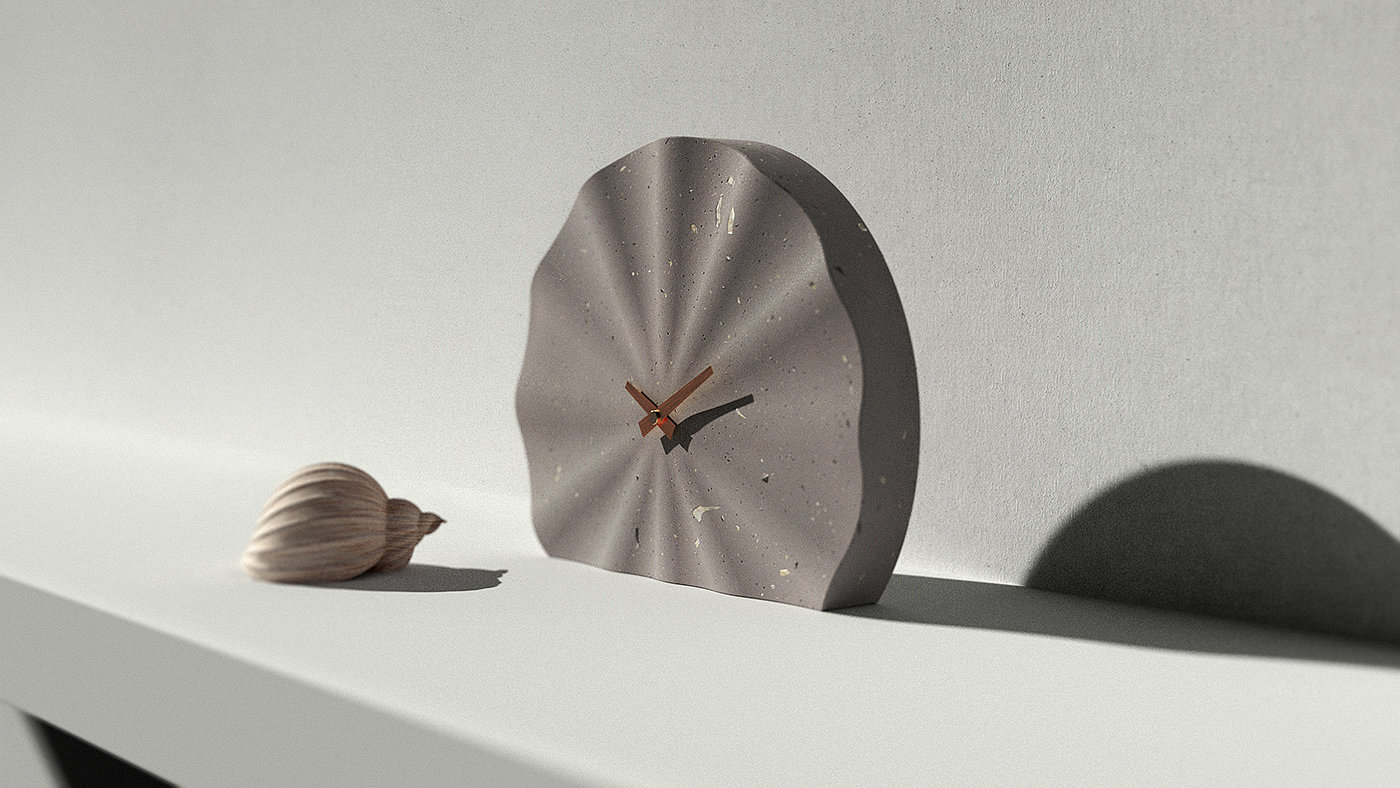 Concrete Hours 是一款典型的材料应用创新美学设计时钟,其创新性采用了贝壳与混凝土的材料设计,虽说是坚固材料的完美融合,但设计师在时钟产品装饰细节纹理赋予其贝壳形状的柔软视觉效果美学。