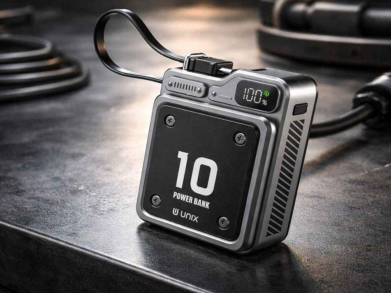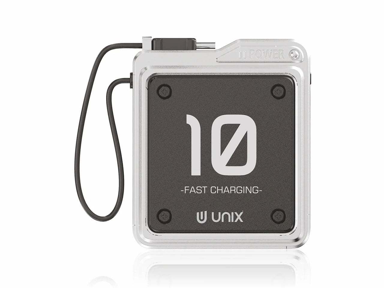 Unix 是一款重新设计的充电宝产品设计,本身就是一款便携式充电宝产品,有着重新设计的硬核设计风格和元素,自带收纳充电线缆,还小屏幕显示电量信息,四个螺丝的硬核设计细节营造了整体设计风格。