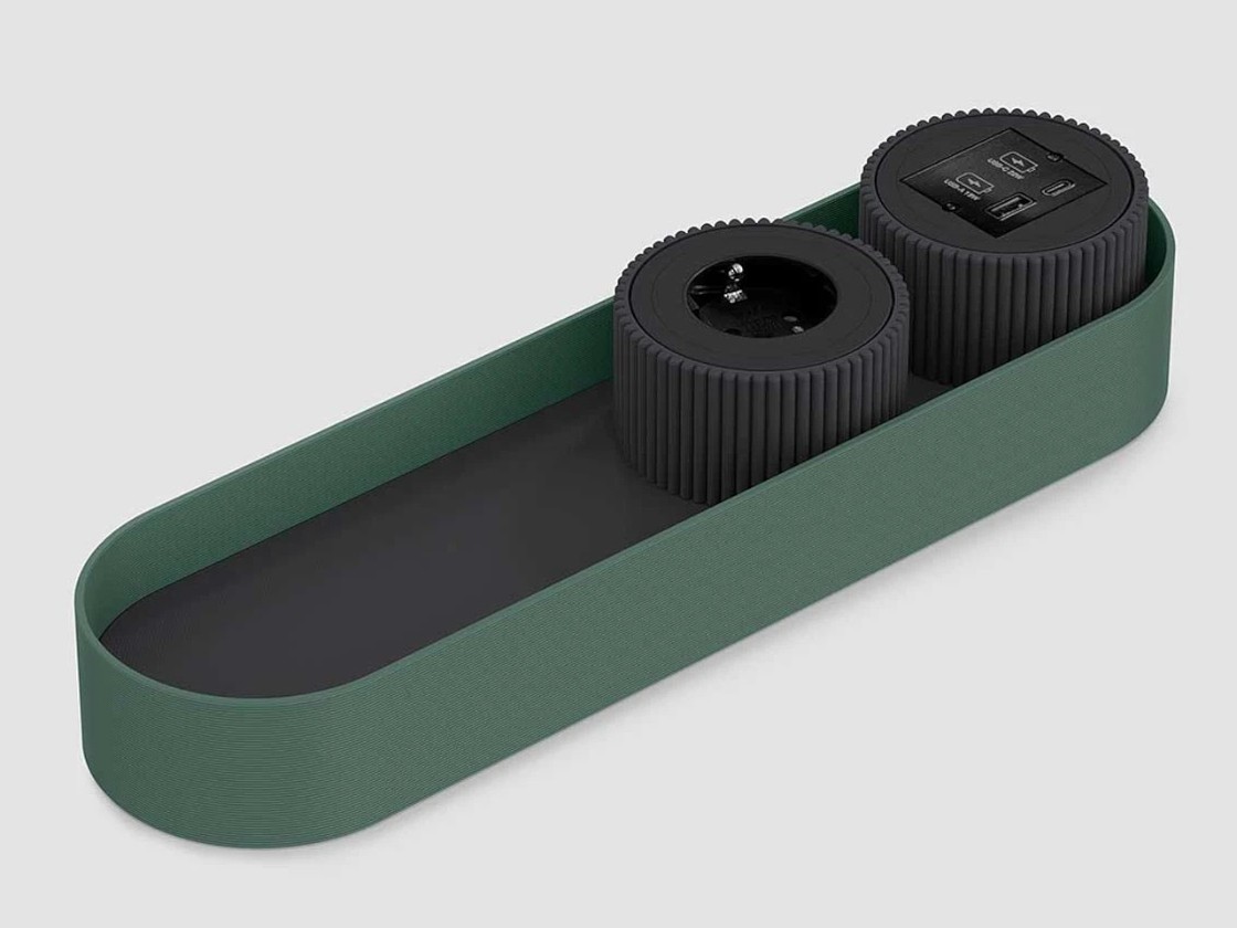 bFRIENDS Power Module 是一款重新设计的插线板设计,它是一款环保模块化设计的插座,本质还是一款多合一设计,其采用食品包装回收再生生物塑料制成。3D打印工艺,除了充电,还有收纳的功能。