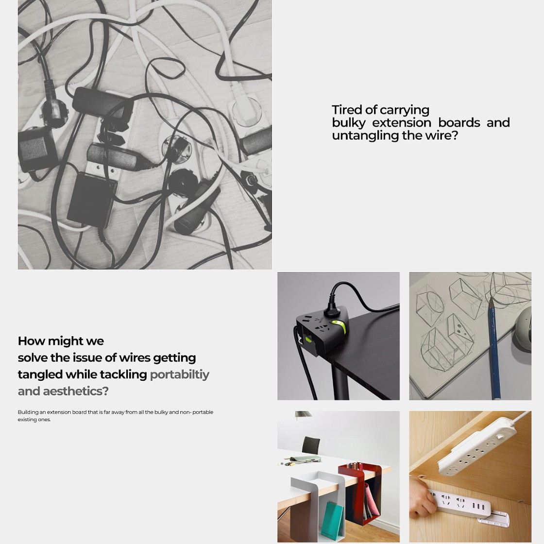 Xtend 是一款重新设计的便携插排设计,其有着与传统插座完全不同的形态,从外观上看更像是一款扣具而非插座。当然形态设计带来的功能设计创新,其可以结构夹在桌边,打造桌面专属充电区,专为移动办公而设计。
