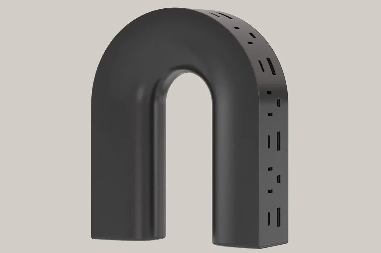 ME-1 是一款重新设计的插排设计,其凭借创意设计斩获了红点奖大奖设计。这是一款磁性U形电源板,极为方便收纳,可挂在桌子下面,要么粘在墙上,可方便使用美式标准三脚插头、USB端口和USB-C端口,同时还能方便地将多余的线缆缠绕在设备上。