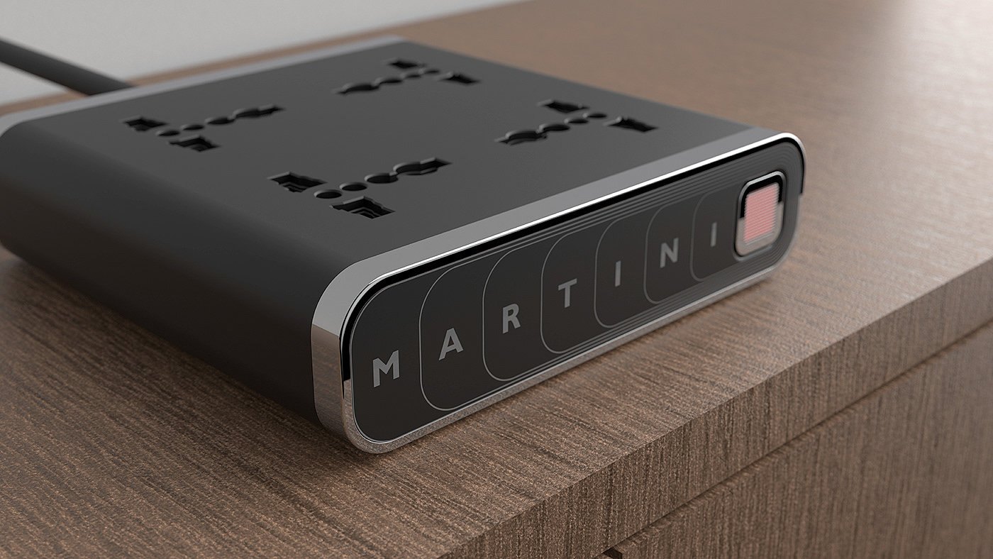 MARTINI 是一款重新设计的插排设计,其为扁平化设计形态,长方体造型,正面设计有四个插座的插孔设计,方便插入使用,整体看起来极为简洁高级的存在。