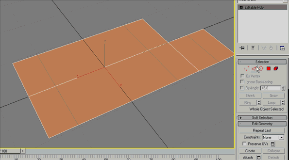水和地面样条转换为可编辑多边形,如下图所示。 |