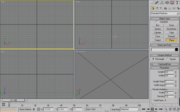 首先创建一个平面,然后将它移到到原点,如下图 |