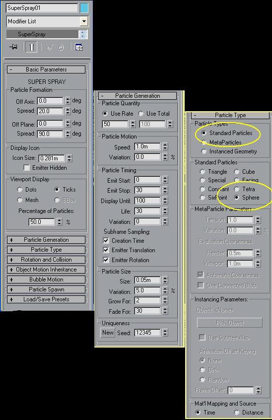 3。随着超级喷图标仍然选择去修改面板和调整一些基本的参数上显示的图像样本。现在玩的时间滑块,将它沿10帧说。