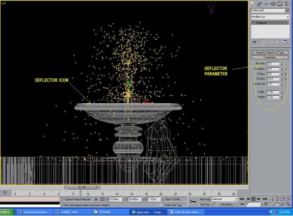然后在修改面板,调整反弹量至少为0.3,8.0%和10%的摩擦的变化。现在玩的时间滑块,现在观察你的泉源它的行为和反应的导流板。粒子反弹,因为它触及水面(导流)。您可以调整的金额,只要你喜欢。但是,观察的喷泉的高度向下的力的平衡,在理论上,没有太大的反弹会发生。