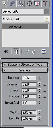 12。现在,我们让他们向下回落,我们能够控制的地方去,肯定必须停止对水的池塘。因此,为了使这再次激活的空间扭曲,然后引下线,然后偏转。在顶视图端口拖动屏幕上的某处创建一个导流器图标就足以覆盖整个水池(名称导流3)。左视口,然后在顶部水的池塘水面上移动偏转图标。然后调整一些基本的参数,如图所示。