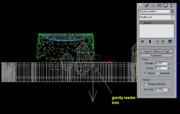 11。现在玩的时间滑块,观察粒子阵列粒子的行为,它遍布在水平方向。让我们控制。在命令面板上,空间扭曲,然后部队,然后重力,顶视图端口,将有地方创造超重力反应器的图标。(重新命名这个到重力溢出)。
