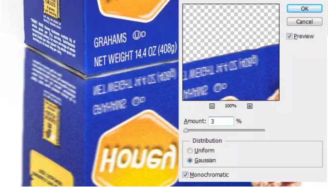 8、点击滤镜> 杂色 > 添加杂色。设置数量为3%,选择高斯分布,选择单色。