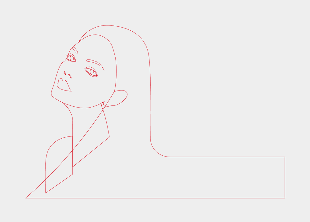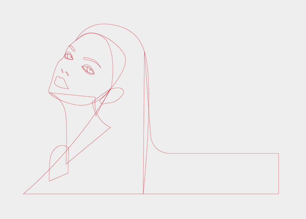 处理人物剩下的部分。这时可以稍微发挥创意,比如我在这里增加了头发的长度和弧度。也是这时开始,我们就丢弃对照片的依赖。关闭照片可见,完全从线条的角度来审视整个画面。