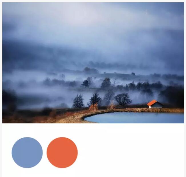 在这里 选择了红色屋顶的暖橙色,和蓝色的冷感进行了均衡。