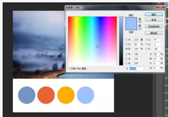 在PS里打开这张图片,吸取色彩。吸取色彩并不是任意选取自己喜欢的颜色就可以,根据整个图片的色彩分布,先找到图片的主色调。