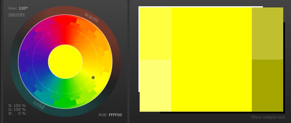 那么什么是对比色呢?就是在色环上位置刚好相对的颜色,例如:红色和绿色,紫色和橙色,蓝色和黄色。
