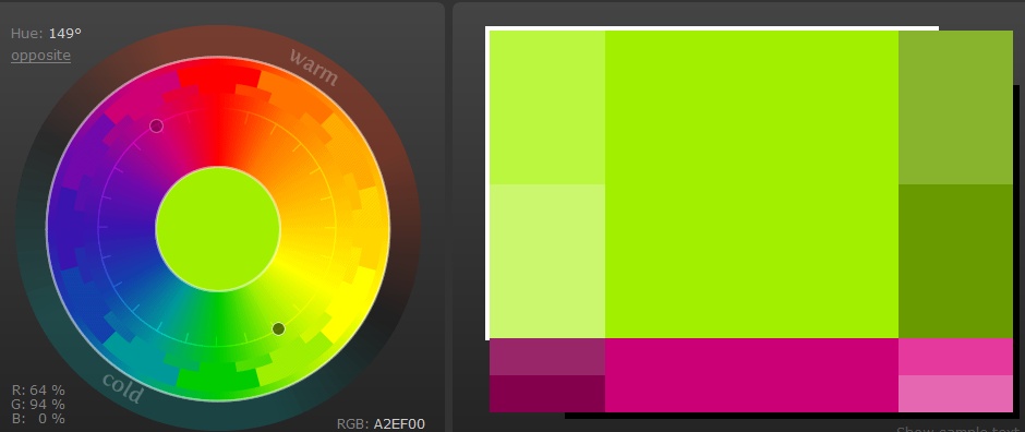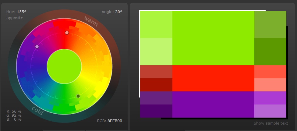 如果你觉得你选择辅助色强调不够强烈,你可以另外在主色基础上,从色环里选择主色的对比色,作为第三种色彩方案。