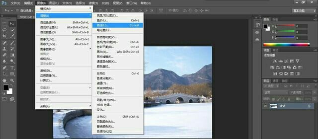 2、首先说明一下曲线是如何调用出来的,第一种方法,是在菜单栏,图像,调整里面找到曲线,点击打开;