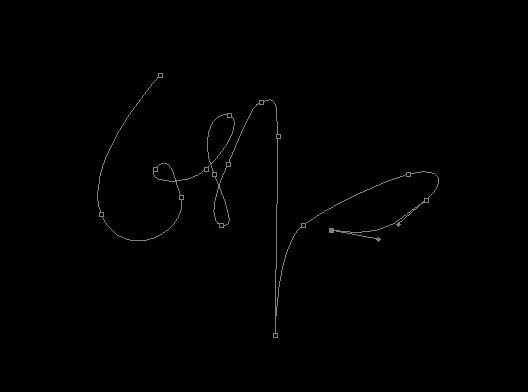 1、新建一个800 * 600 像素的文件,背景填充黑色,新建一个图层,用钢笔工具勾出一组仿手写字路径,如图1。可直接用连写字体。