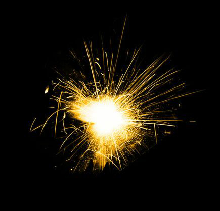 8、打开下图所示素材,拖进来,图层混合模式改为“滤色”,适当调整大小,放到刚才的素材上面,加上图层蒙版,用黑色画笔擦掉一些不需要的部分。然后把这两个火花素材合并,图层混合模式改为“滤色”。