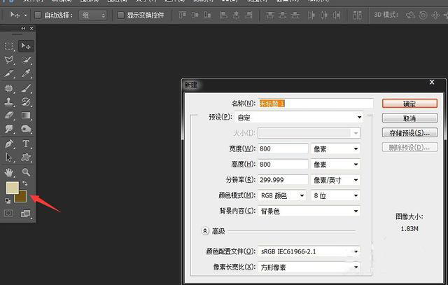 1、首先新建一个800*800的文件,前景色和背景色设置为任意一个颜色,然后alt+delete填充前景色。