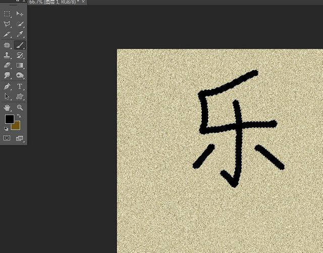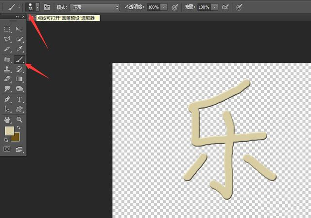 3、画笔选用适当大小,新建个图层,使用画笔工具画出自己喜欢的字,按着ctrl不放选出选区。