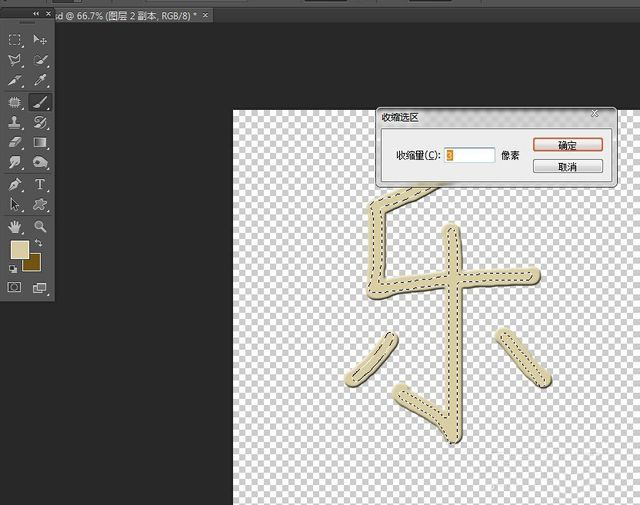 8、执行“选择-重新选择”这样就把原来的选区恢复了,然后执行1像素的羽化处理,再执行”选择-修改-收缩“,数值设为3,确定后在按delete键删除选区里的内容