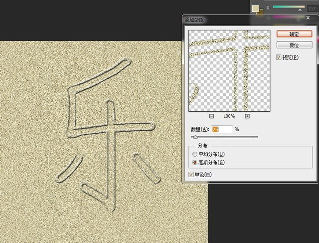 2、执行“滤镜-杂色-添加杂色”数值设为25。